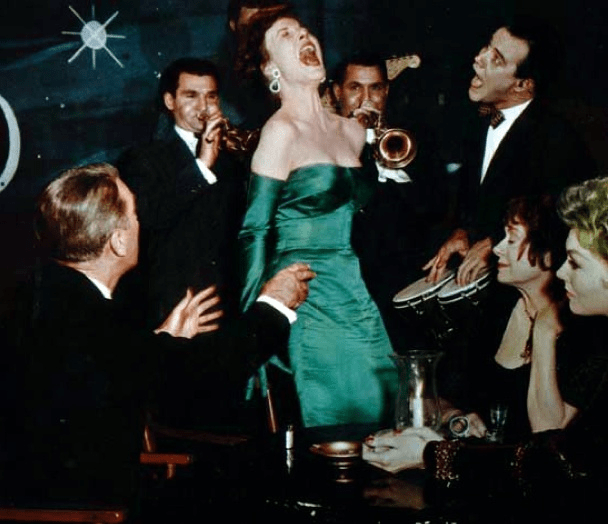 Anyway, before I get too carried away looking at images of green dresses on Pinterest, the point is that Merle herself is actually an interesting character. She went to college with Gillian and was known as something of a “beau-snatcher”; she once wrote an anonymous letter to the dean complaining about a girl attending class barefoot. She is deathly afraid of thunderstorms. She agreed to accompany her fiancee to the Zodiac club, where the musicians torment her until she leaves (granted, she had just insulted one of them, the perfectly gay-coded and bitchy Jack Lemmon). I’m not sure what she does for a living, but she has a nice apartment to herself, though Jimmy Stewart rightly asserts that she needs to redecorate, and she paints in a skilled abstract style that is too confusing for him. After he jilts her on Christmas Day, she refuses to take him back. Yeah, she is kind of unpleasant, but she has a rich inner life. She was simply with the wrong man, and it took a bit of witchcraft to convince them both of that.