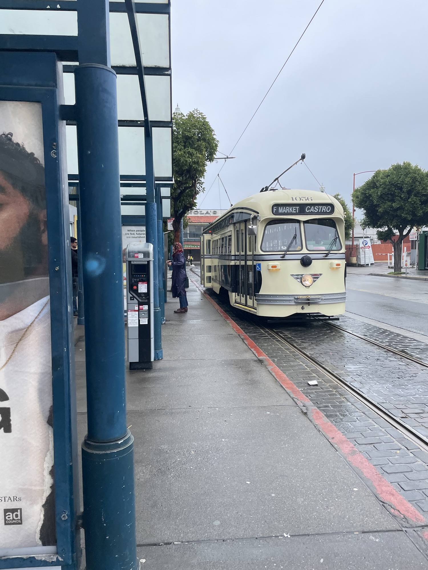 Instead, they have streetcars running past the ferry building, and the pull was too great, so I finished my empanada and missed my ferry. A friend had texted I should go see the Jimmy Hendrix mural on his former residence in the Haight, but I wandered over to the cable car stop and met with one of the city’s Welcome Ambassadors. I wrote him a positive review, which was responded to later by another Mandy, and rode up to the Mission district, then changed cars, changed again when I got on the wrong one and got in trouble for trying to jump off a moving cable car, and ended up in Ghiradelli Square…which is funny because the chocolates are square. I did the touristy thing, then caught the vintage Kansas City streetcar, which doubles as a guided tour, back to the ferry building…where I missed another ferry by eight minutes.