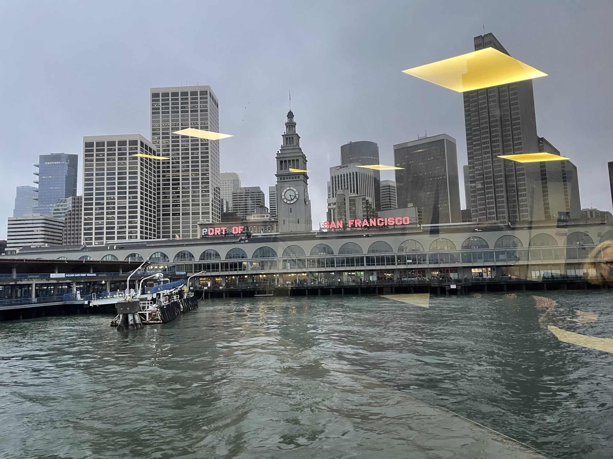 At this point, I was cold and tired and bored, plus my phone needed charging and my backpack was getting heavy. To recount: a Lyft, a plane, a tram, a subway, a cable car, a streetcar, plus a lot of mileage on foot, carrying my belongings on my back. And now waiting for the ferry, which was operating on its weekend schedule, I realized too late. I was not alone, and a woman commiserated with me even as I helped another find her correct gate.