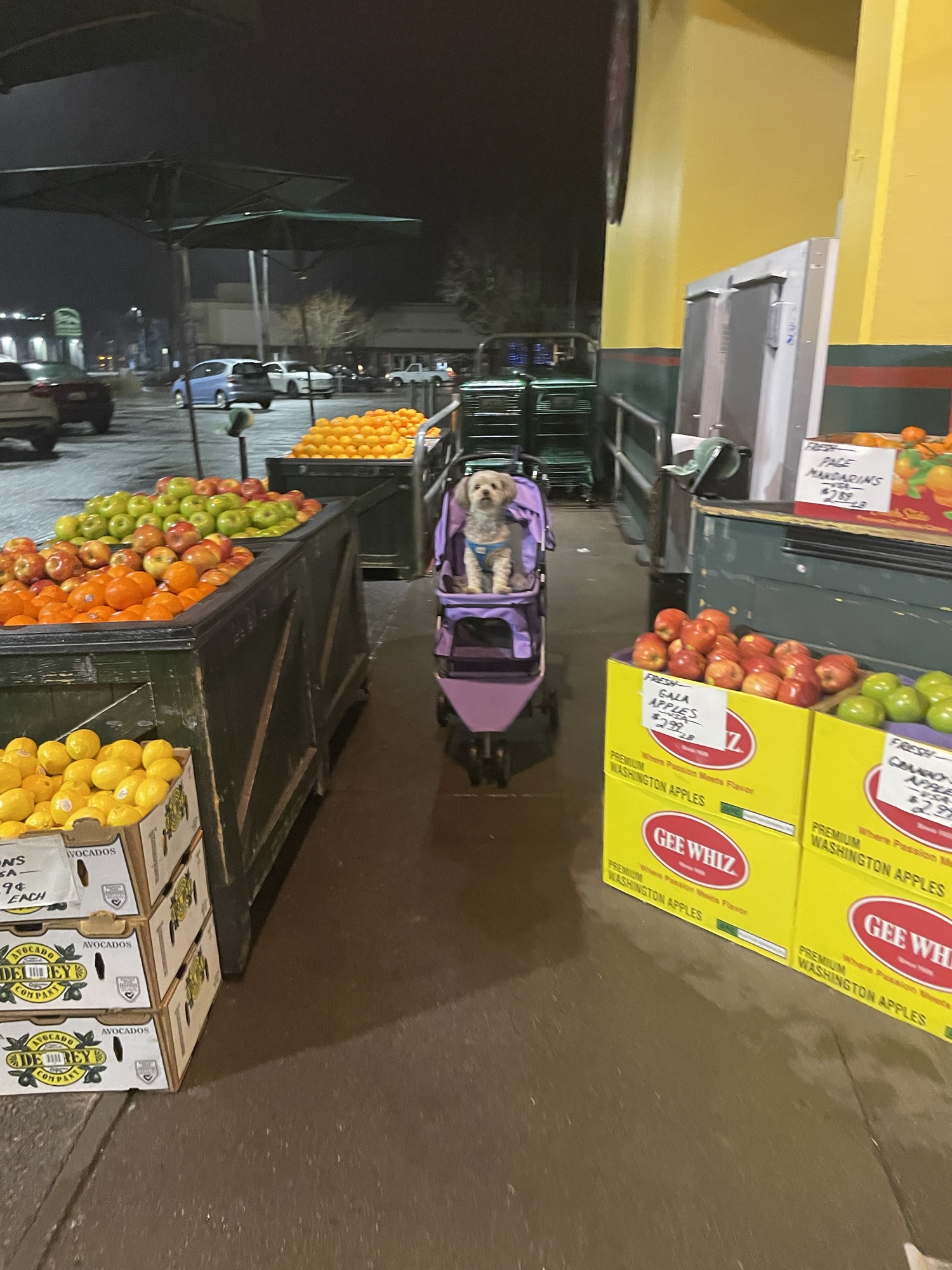 I dried out on the train, about an hour’s ride up the 101, and disembarked in downtown Petaluma. I was still a forty-minute walk from my destination, across the 101, so I turned instead toward downtown and picked out my dinner from Petaluma Market. The friend I was supposed to be meeting had pulled over in the rain and stopped for the night, so I called a Lyft to drive me to my hotel, where I ate my salad in the bathtub.