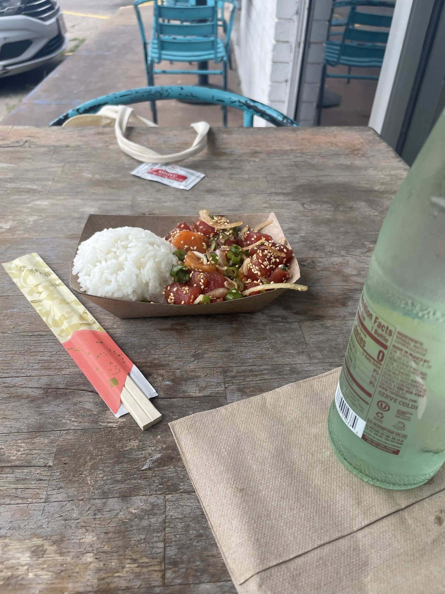 I went paddleboarding for the first time this year. I was disappointed from the jump (not the latte, though; she was delicious) and though it wasn’t my worst paddleboard session it definitely wasn’t the best. More of a filler session than anything. So when I deboarded and got the fuck out of Oyster Landing, I swung by Poke Poke on Hancock, where I’ve been meaning to go for a year, and got reacquainted with a less touristy part of Austin.