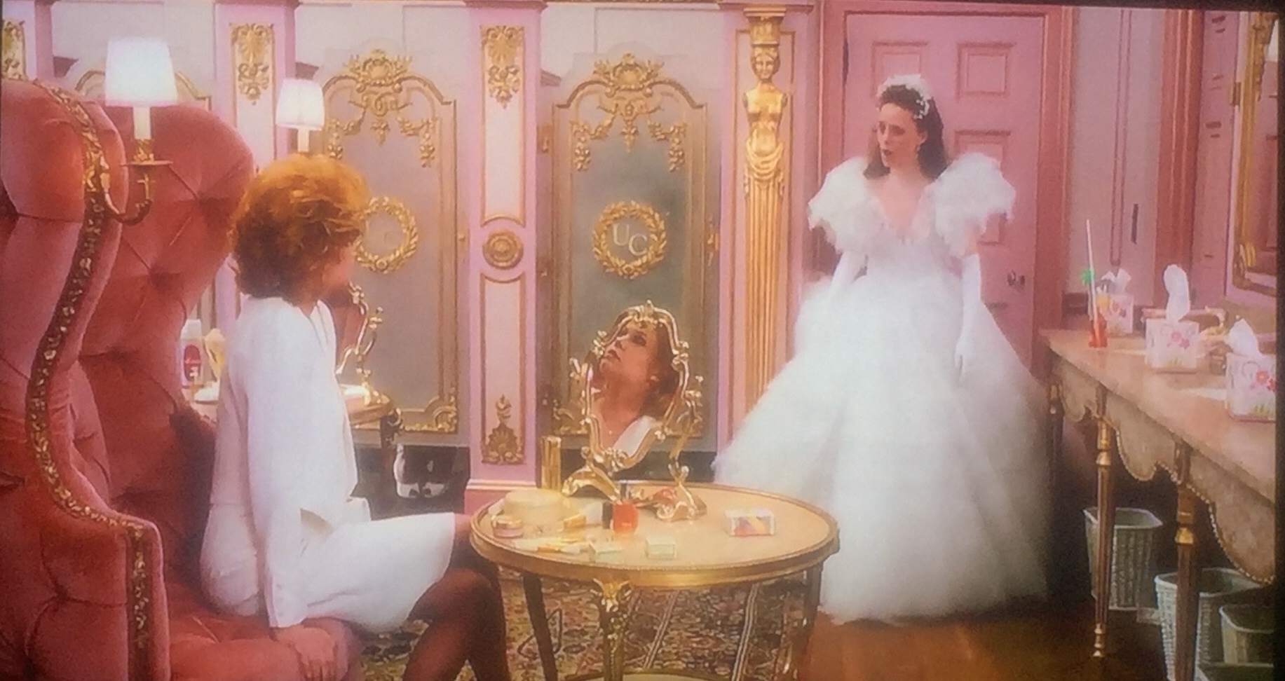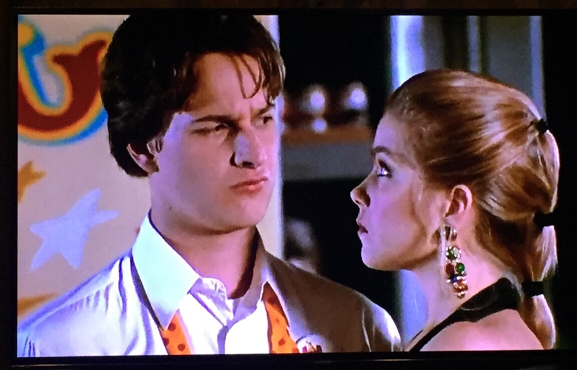 Setting up what I’d been waiting for this whole rewatch: “Life’s Rich Tapestry” from Modern English. When I first started grooving to this song on Spotify, I couldn’t place it to a scene, so I thought it must have been the closing credits, but it drops in as Rose and Sue Ellen are talking and really picks up when Kenny and his stoner bro are sitting on the bridge across the pool. It’s all the happy ending stuff, which makes me very glad. It fades out as Swell approaches Bryan, and that’s so “I Only Have Eyes for You” (their first-kiss song) can pick up again. And I still think “Swell, what are you doing New Year’s Eve?” is a sweetly romantic line, if a little nerdy.