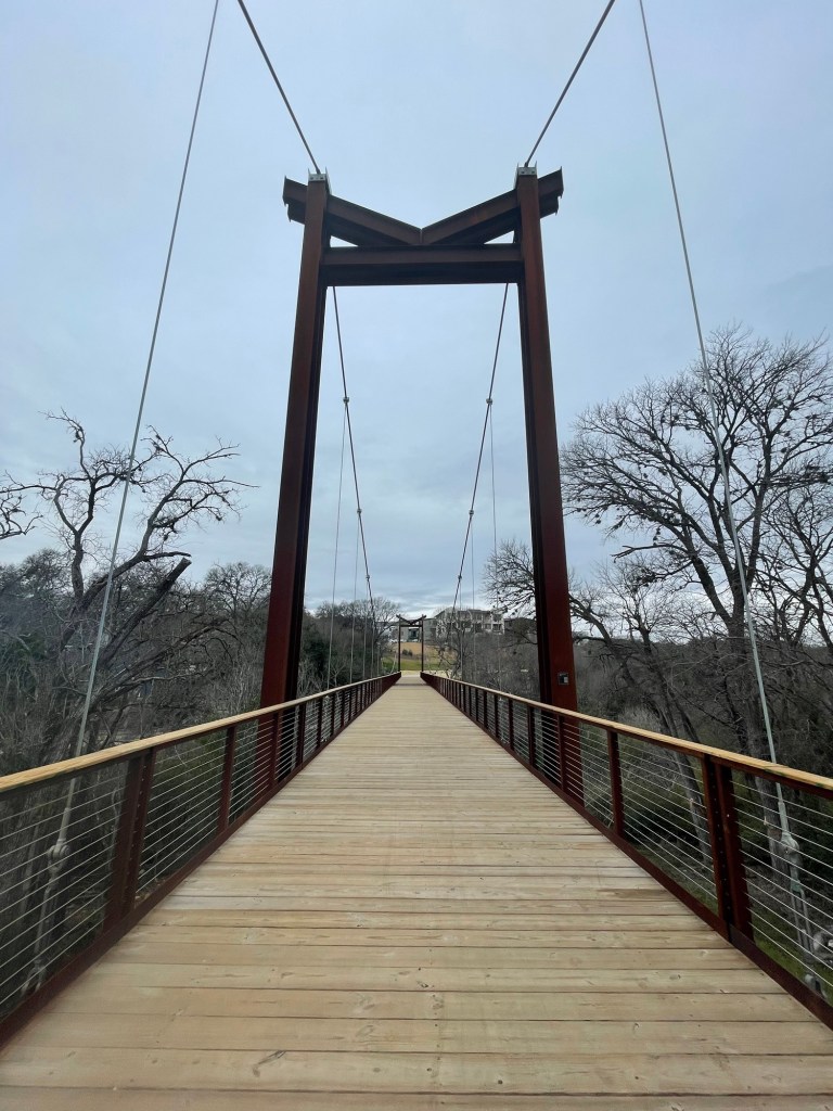 The next day, I visited the new bridge connecting Shoal Creek to The Grove (after stopping at Stinson’s for the first time ever to try a buttered coffee).